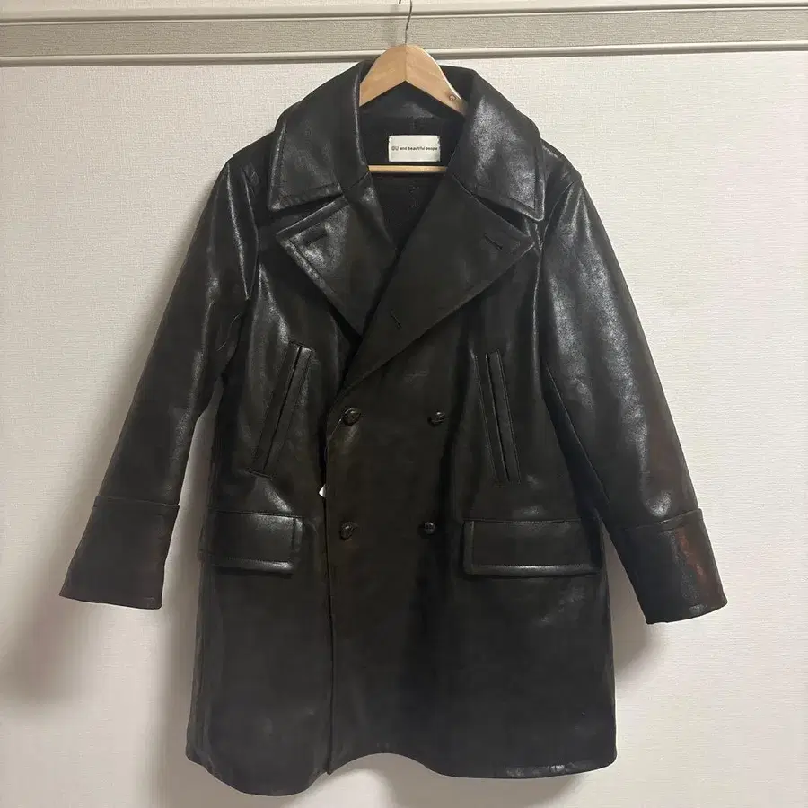 GU와 beautiful people의 콜라보 상품으로, 출시 후 바로 완판된 인조 가죽 코트입니다.