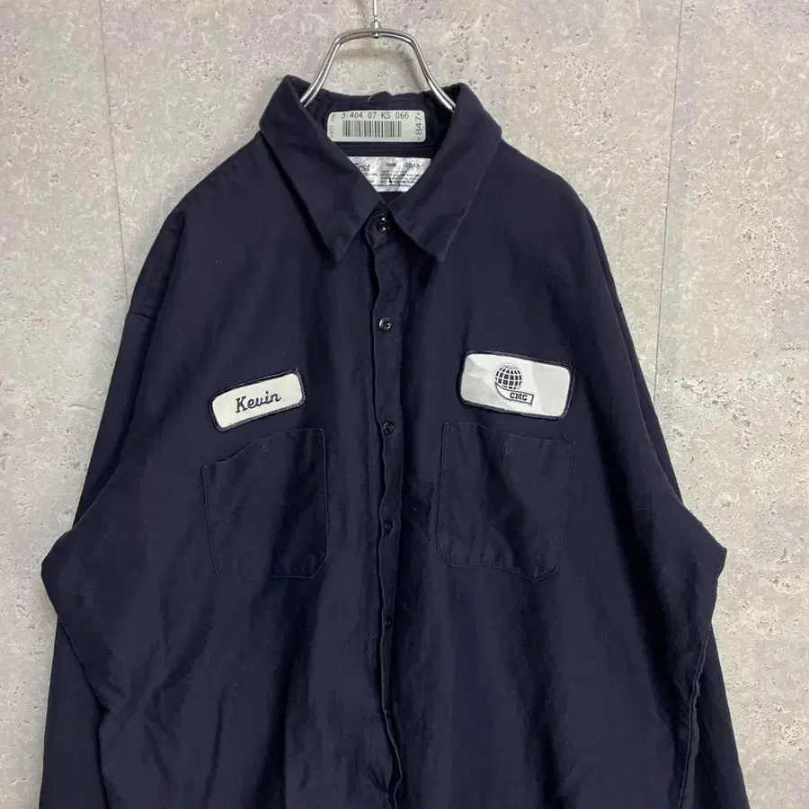 Uni First 네이비 워크 셔츠 긴팔 기업 로고 와펜 2XL