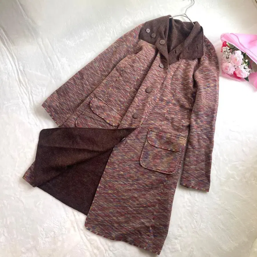 리버서블 니트 롱 코트 브라운 버튼 타입