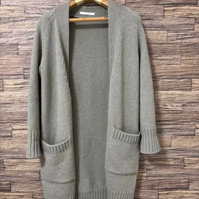 PLAINPEOPLE의 무게감 있는 캐시미어 100% 니트 코트입니다. 툭 걸쳐 입는 스타일로, 노카라 디자인입니다.