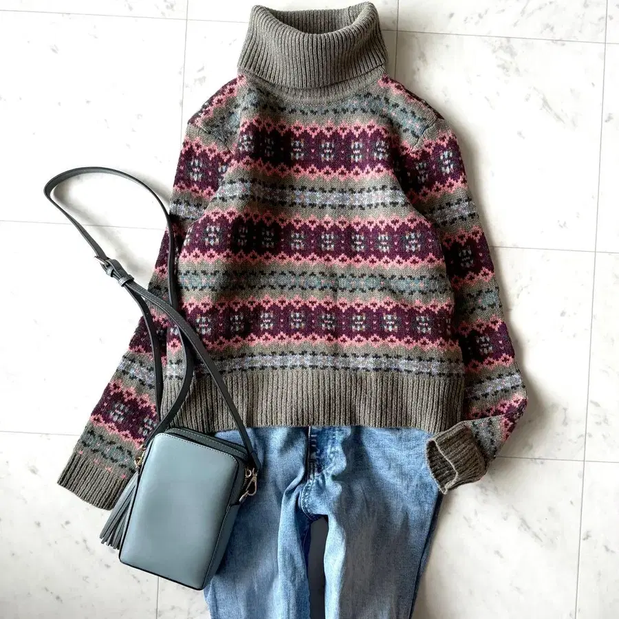 멋진 페어아일 패턴의 터틀넥 니트입니다.