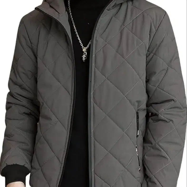 [67] 다크 그레이 XL 퀼팅 다운 자켓 후드 부착