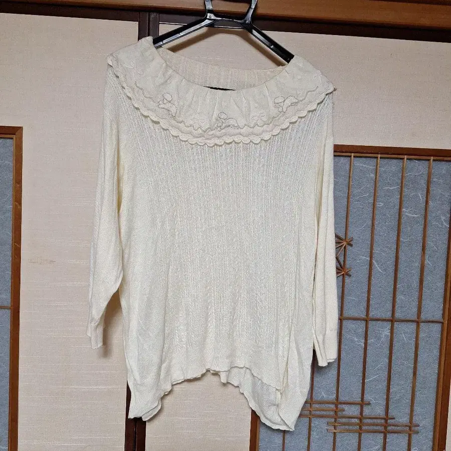 프릴과 토끼 자수가 특징인 아이보리 8부 소매 니트탑. - 색상: 아이보리 - 디자인: 프릴이 달린 오프숄더 - 자수: 토끼와 리본 자수 - 소매 길이: 5부 소매 - 소재: 니트 방문해 주셔서 감사합니다. 자택 보관으로 인해 약간의 스크래치가 있습니다. 색상 - 화이트 계열 패턴/디자인 - 레이스/프릴 얼룩, 찢김, 냄새 등 - 없음