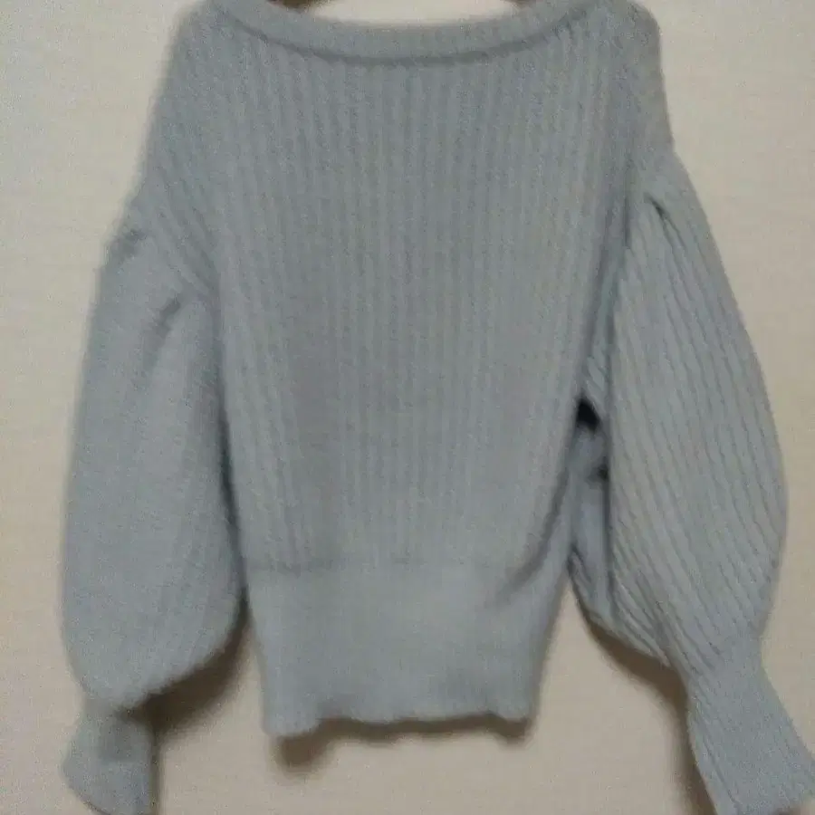 Nostalgia 부드러운 볼륨 소매 라이트 블루 리브 니트