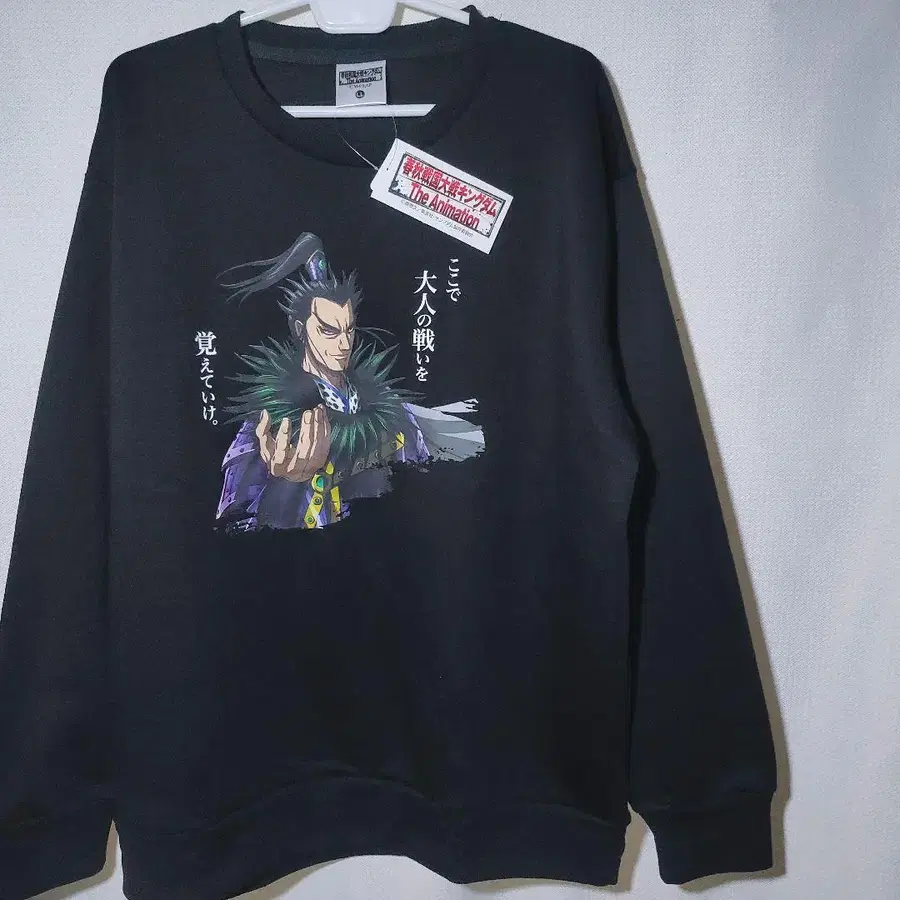 하라 야스히사의 만화를 원작으로 한 중국 전국시대 애니메이션 [ 춘추전국대전 킹덤 the animation ]에 등장하는, 전(前) 도적단의 수령에서 육대장군으로 오른 환기(桓騎)가 흑양구 전투에서 주인공들과 맞선 한 장면을 프론트에 프린트한 트레이닝복. 목 안쪽에는 타이틀 로고가 프린트되어 있으며, 높은 보온성과 착용감이 좋은 아이템으로 활용도가 높습니다.