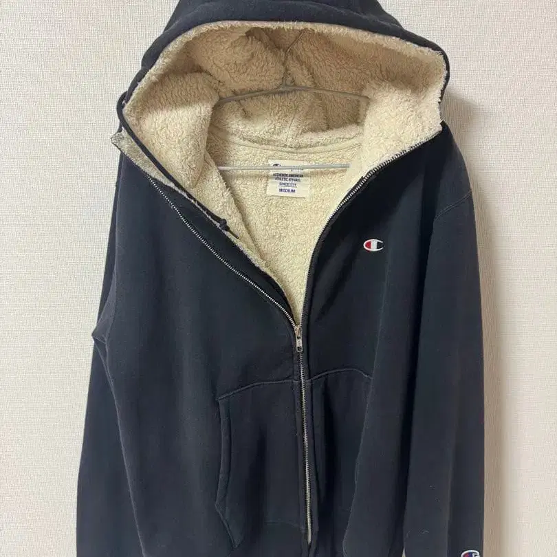 Champion 지퍼 후드티 블랙 보아 안감 원단 남성용 M