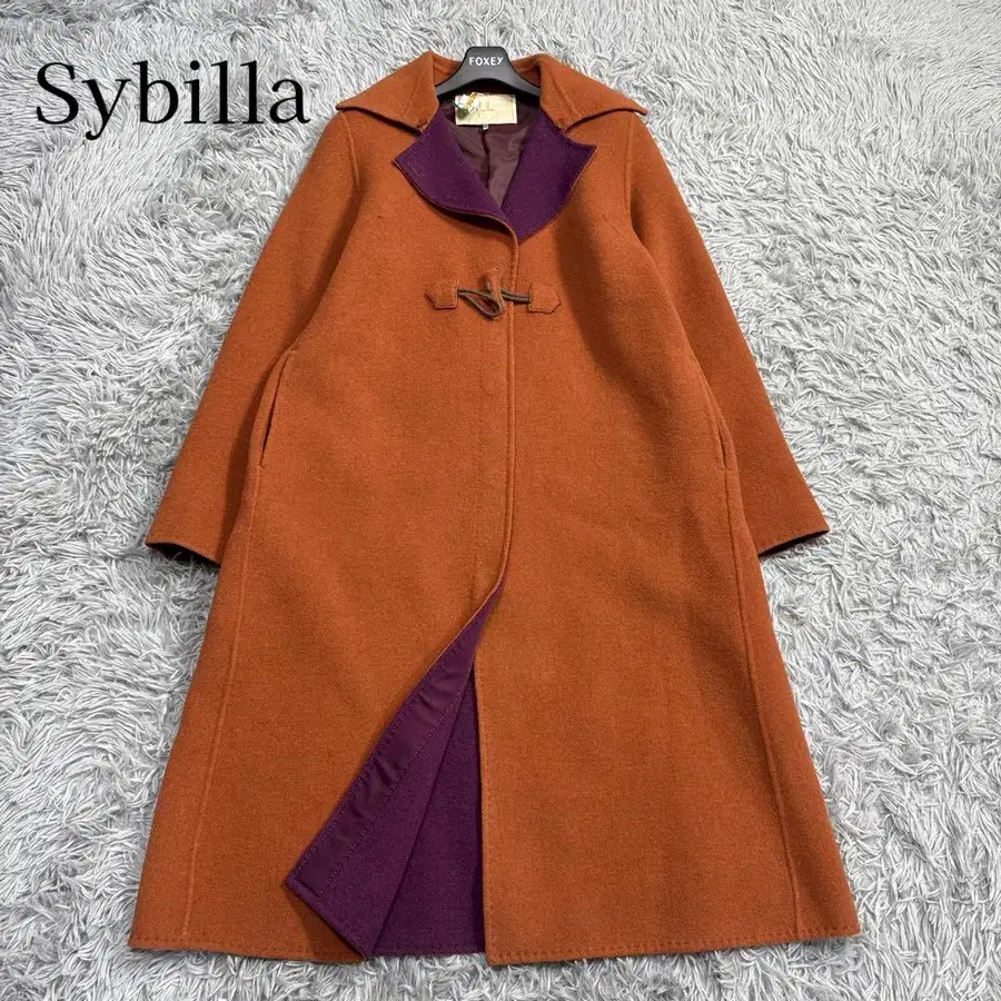 새상품급 시빌라 바이컬러 롱 코트 울 오렌지 x 퍼플 M 루즈핏