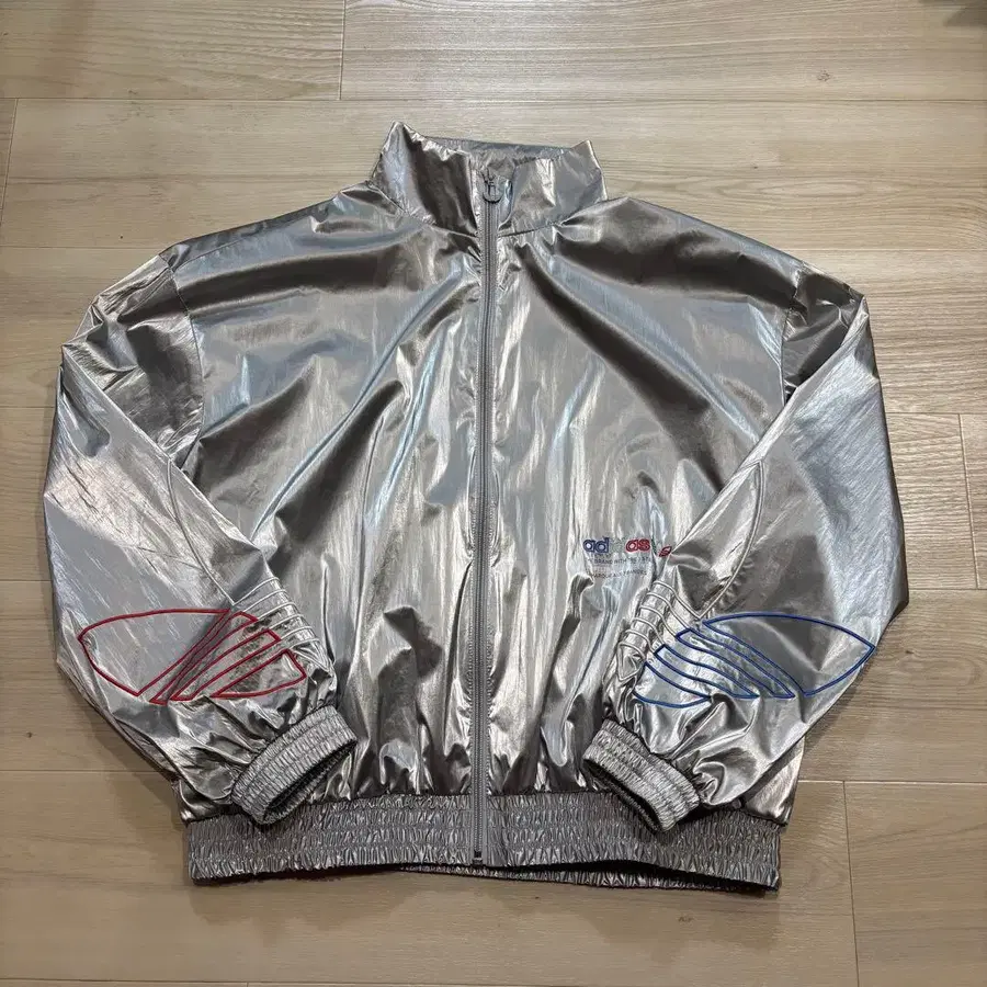 아디다스 은색 아디컬러 트리컬러 메탈릭 나일론 자켓