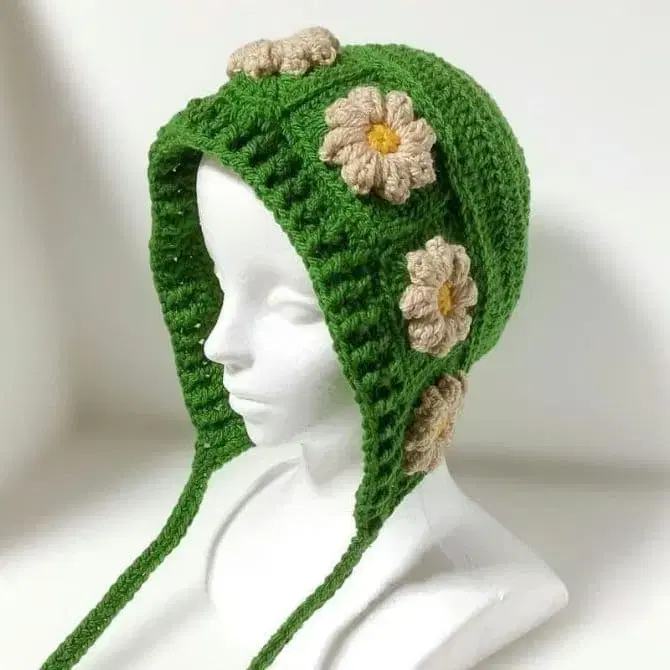 핸드메이드 꽃 보닛 귀도리 니트 모자 발라클라바 후드 모자 y2k