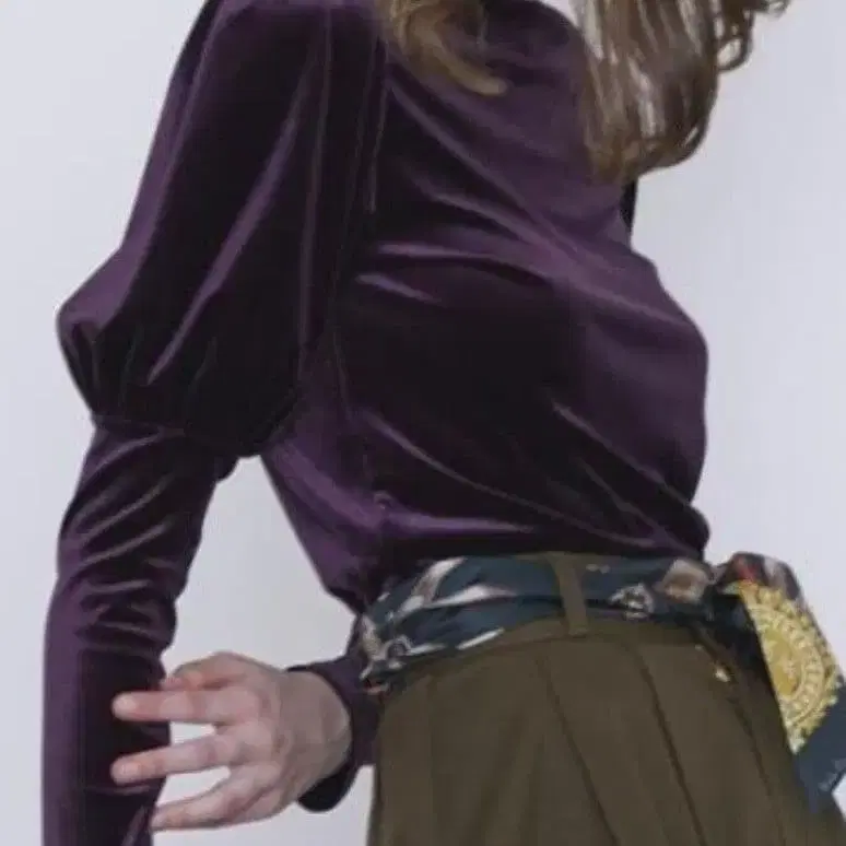 택 포함 미사용 G.V.G.V. 벨로아 퍼프 슬리브 상의 퍼플 S