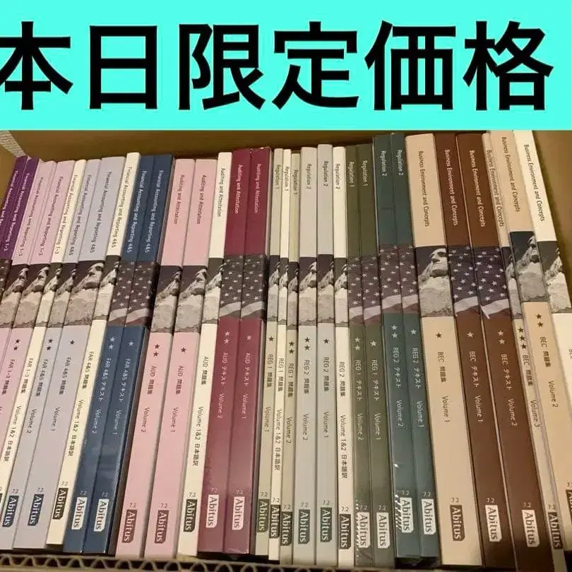 아비타스의 USCPA 4과목(FAR, BEC, AUD, REG) 교재, 문제집 및 일본어 번역본이 포함된 세트입니다. 미개봉품과 일부 개봉 완료된 물품이 있습니다. 필기 등은 없습니다.