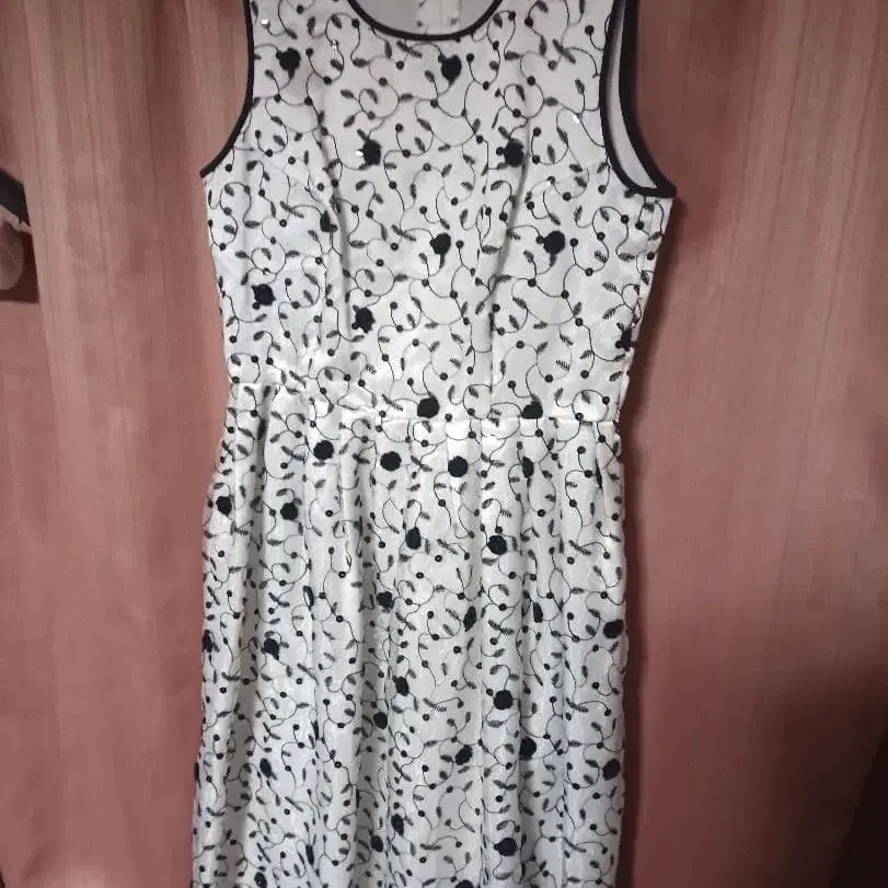 하나에모리 자수 슬리브리스 스팽글 레이스 원피스