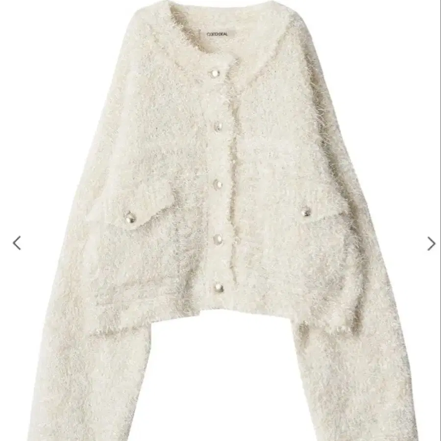 복슬복슬한 털이 긴 짜임이 사랑스러운 니트 자켓. 광택이 있는 폴리 페더와 부클레 실을 MIX하여 오리지널 패턴 짜임으로 완성한 니트 패브릭. 골드 버튼이 빛나는 플랩 부착 패치 포켓으로 올해 유행하는 클래식 x 워크 분위기를 연출! 카라 끝, 소매, 밑단 등에 프린지를 더해 입체감 있는 화려한 포인트를 주었습니다.