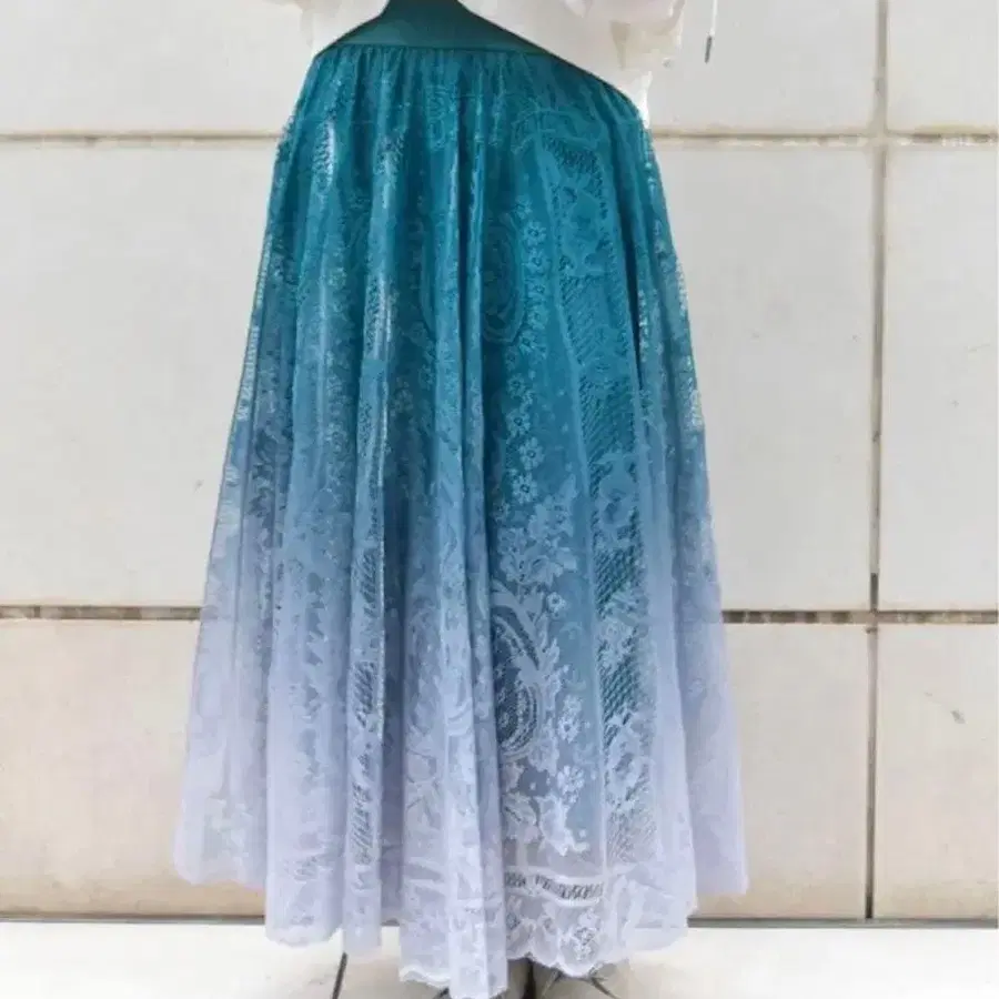 엑시즈팜 그라데 레이스 서큘러 스커트 블루그린