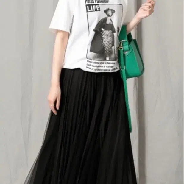그레디 브릴리언트 블랙 튤 플리츠 플레어 스커트