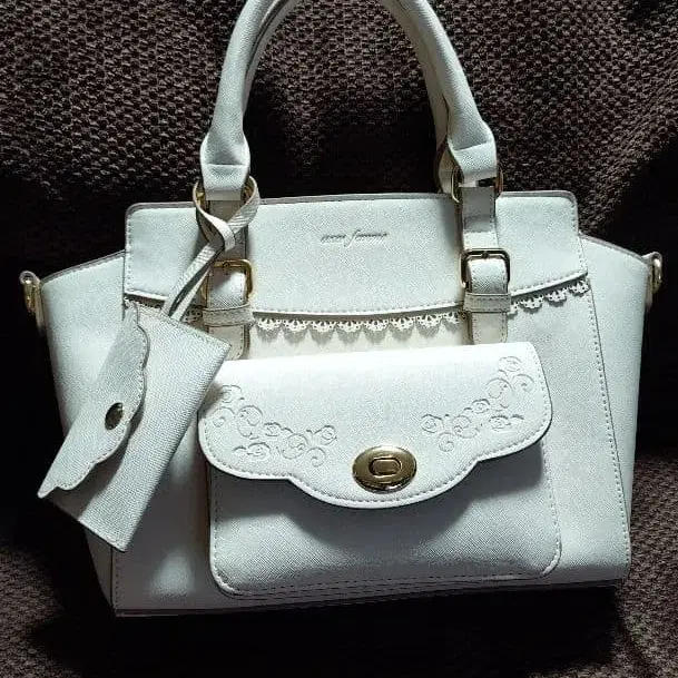 엑시즈팜에서 구매했습니다. 몇 번 사용했습니다. 안쪽에 얼룩 같은 것이 있습니다. 사진으로 확인해 주세요. 다른 화이트 색상 가방을 구매했기 때문에, 마음에 들어 하시는 분께 양도하고 싶습니다. 프론트 포켓이 달린 화이트 백, 합성 피혁 소재의 중간 사이즈입니다. - 색상: 화이트 - 디자인: 프론트 포켓 부착 - 소재: 합성 피혁 - 사이즈: 중간 - 부속품: 택 포함 - 스타일: 백 방문해 주셔서 감사합니다.