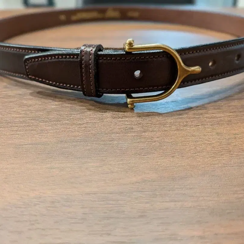 가장자리를 정성스럽게 스티치로 마무리하고, 브라스 소재의 잉글리시 스퍼 버클을 채용한 디자인.