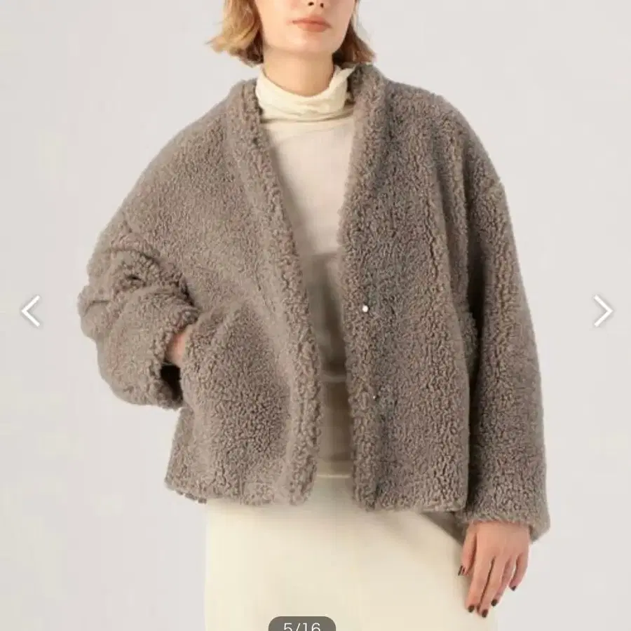 리사이클 폴리에스터를 사용한, 독특한 꼬임감과 부드러움이 특징인 에코 퍼 소재의 코트.
