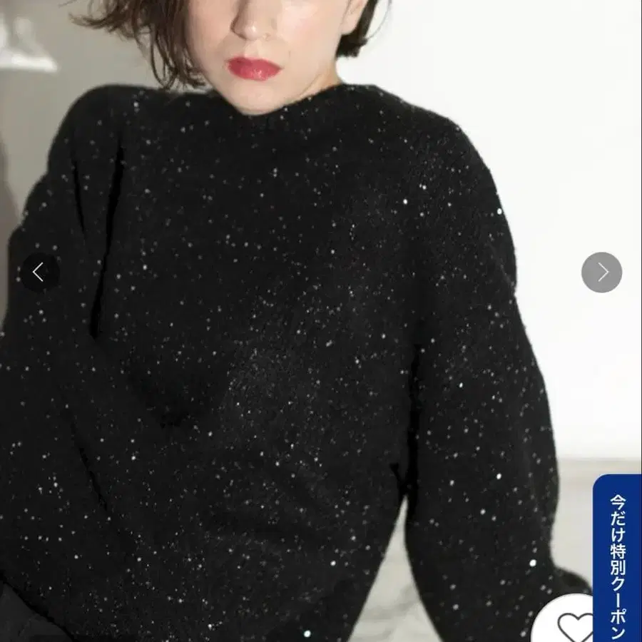 트렌디한 스팽글과 라메 실을 사용하여 반짝임이 화려한 니트탑.