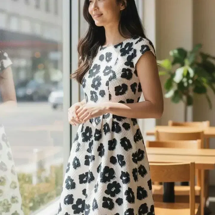 프랑코 페라로 꽃무늬 반팔 무릎 기장 원피스