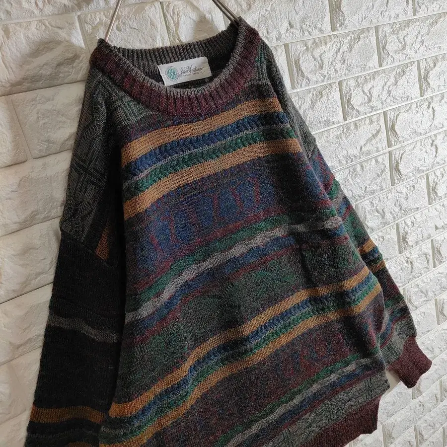 [레트로 자카드 가공] 니트 스웨터 올 패턴 멀티 컬러 L