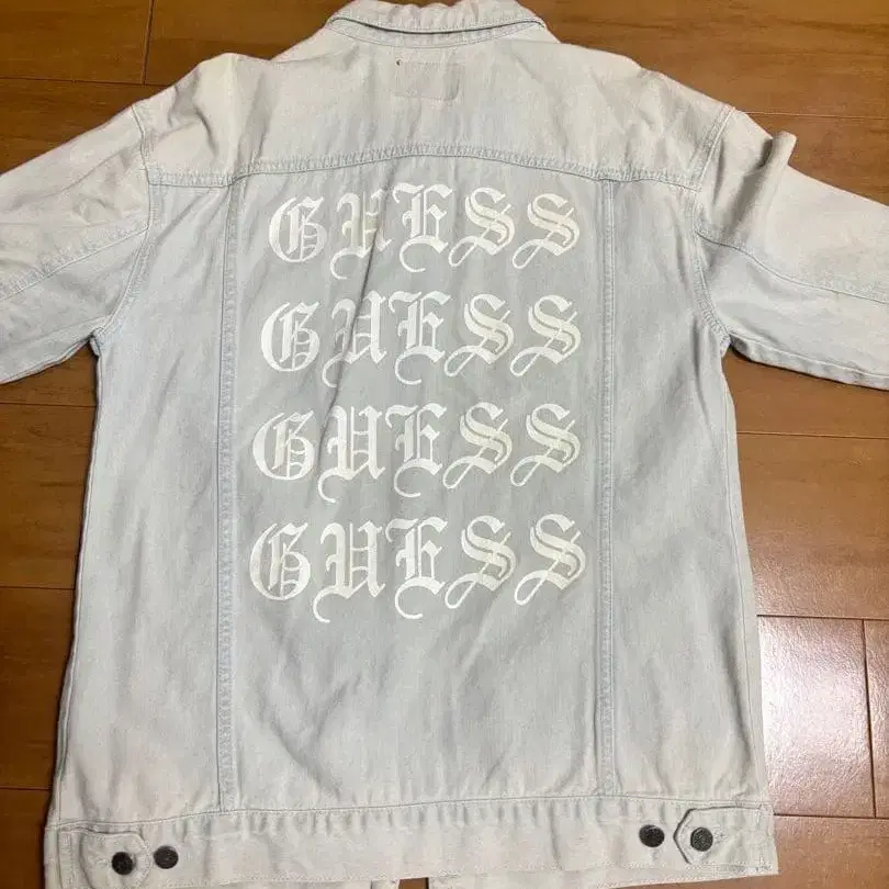 미사용 새상품 2만 엔 정도에 구매했습니다. 데님 자켓, 백에 GUESS 로고 프린트 있음. - 브랜드: GUESS - 색상: 화이트, 블루 - 디자인: 백 프린트 - 스타일: 데님 자켓 - 프론트 포켓: 2개 - 버튼: 프론트 버튼 방문해 주셔서 감사합니다.
