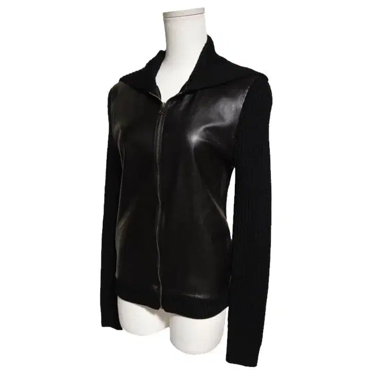 L'AGENCE/라간스 ★ 램 가죽 절개 리브 니트 지퍼 가디건 size:XS