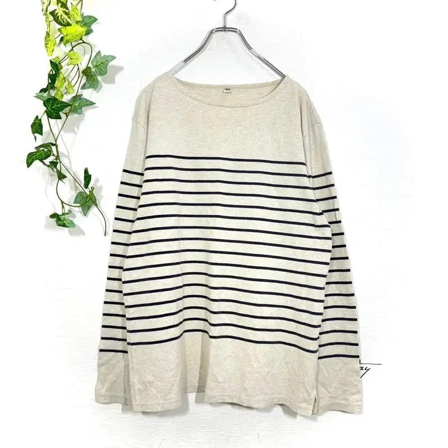 유니클로의 스테디셀러 보더 T셔츠. 캐주얼한 보트넥과 넉넉한 XL 사이즈로 성숙한 내추럴함을 연출합니다. 긴팔이라 환절기에 유용하며, 캐주얼이나 프렌치 마린 스타일에 딱 맞습니다. 가지고 계신 청바지나 스커트와 함께 다양하게 돌려입기 좋습니다.