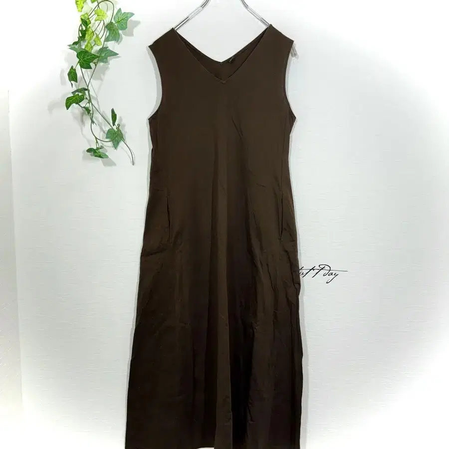 유니클로 V넥 슬리브리스 롱 원피스(L) 브라운 플레어 A라인