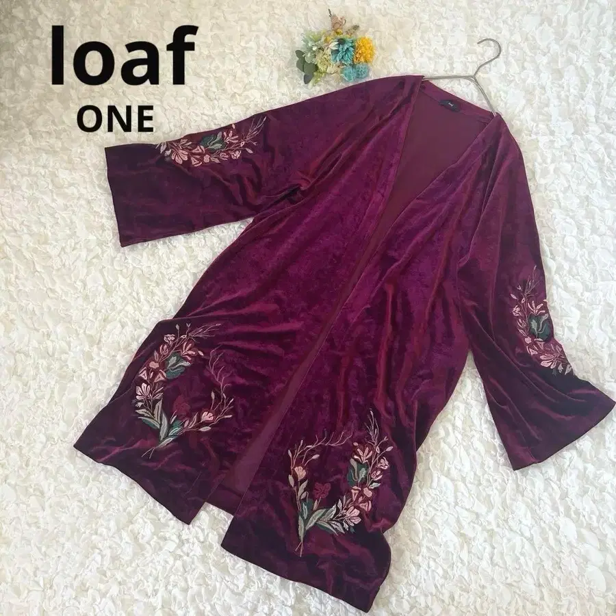 loaf 로프 로프 버건디 자수 가디건 벨로아 벨벳 ONE