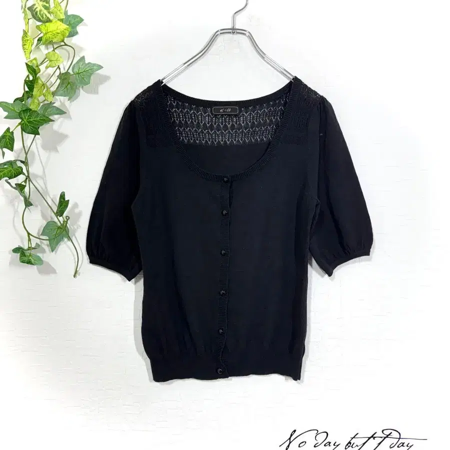 ef-dé (에프데)의 엘레강트한 반팔 니트 가디건입니다. 어깨부터 데콜테까지 섬세한 레이스 짜임과 은은한 파워 숄더 디자인이 페미닌하고 클래시컬한 인상을 줍니다. 다가오는 계절, 냉방병 예방이나 오피스 스타일, 깔끔한 캐주얼에도 활약하는 돌려입기 좋은 검정색 상의입니다. 면과 아크릴 혼방으로 촉감도 좋으며, 이것 하나로 고급스러운 분위기를 연출할 수 있습니다.