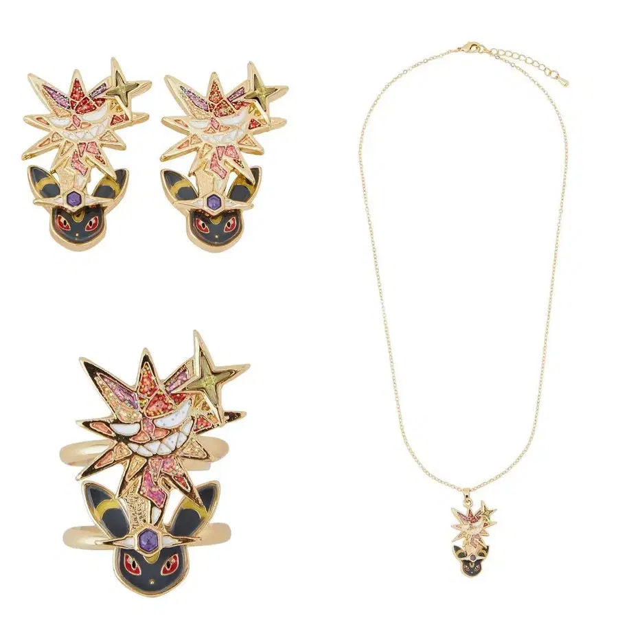 자동 번역되었어요. 원문보기악 타입 테라스탈 블래키 귀걸이/목걸이/반지 세트 ♪