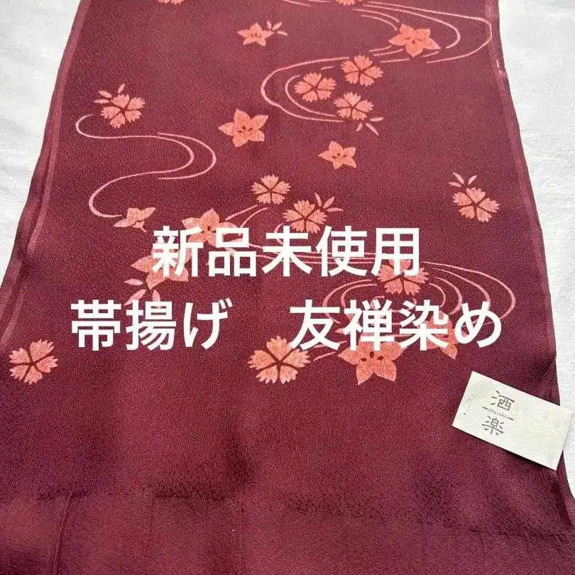 미사용 새상품 택 포함 순수 실크 오비 장식 천 유젠 팥색 다크 레드