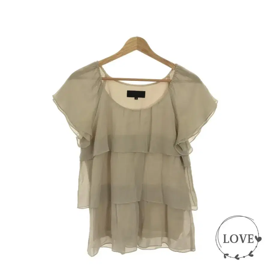 ★ 최종 가격 ★ UNTITLED 언타이틀 상의 티셔츠 티셔츠 반팔 오벌 넥 프렌치 슬리브 티어드 프릴 시어 여성용 베이지 4 일본제 언타이틀