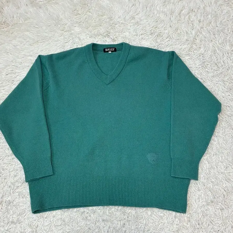 연한 그린 색상의 캐시미어 니트입니다.