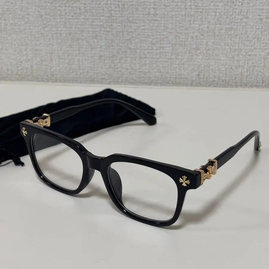 크롬 계열을 상징하는 골드 장식을 곳곳에 더한 패션 안경입니다.
