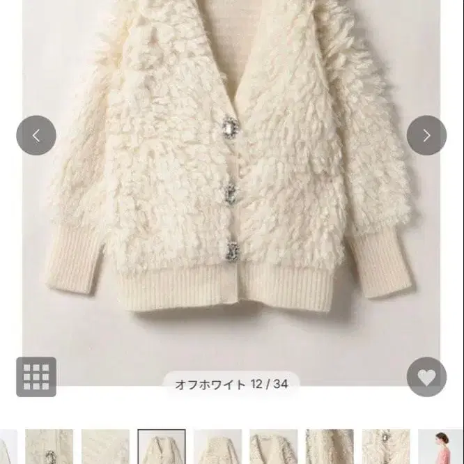 온라인으로 구매했으나 저에게 어울리지 않아 판매합니다. 집에서 시착만 한 상품이며 택 포함입니다. 정가 52800엔 세일가로 구매하여 구매 시 약 27000엔이었습니다. 볼륨감 있는 가디건입니다. 이하 공식 설명 키드 모헤어와 메리노울의 혼방사를 루프 형태로 편직하여 토이 푸들과 같은 복슬복슬한 느낌과 부드러운 느낌을 이미지화했습니다. 풍성한 볼륨감을 즐길 수 있는 가디건입니다. 매우 따뜻하여 본격적인 겨울이 오기 전까지 니트 아우터로도 착용 가능합니다. 복슬복슬한 소재 속에 반짝이는 비쥬가 포인트입니다. 대형 크리스탈 컷 주변에 비쥬를 더하여 화려하게 마무리했습니다. [ 스태프 코멘트 ] 미들 기장의 상의는 밋밋해 보이기 쉽지만, 소재감이 풍부하여 뒷모습까지 사랑스럽습니다. 키드 모헤어를 사용하여 매우 가볍고 따뜻하므로 코트를 입기 전 시기에 아우터 대용으로 좋습니다. 보타이와 프릴 디자인 블라우스와 함께 코디하는 것도 귀여울 것 같습니다. 색상 - 화이트 계열 계절 - 가을/겨울 얼룩, 찢김, 냄새 등 - 없음 #가디건 #볼륨니트 #룰루윌비 #알아바일