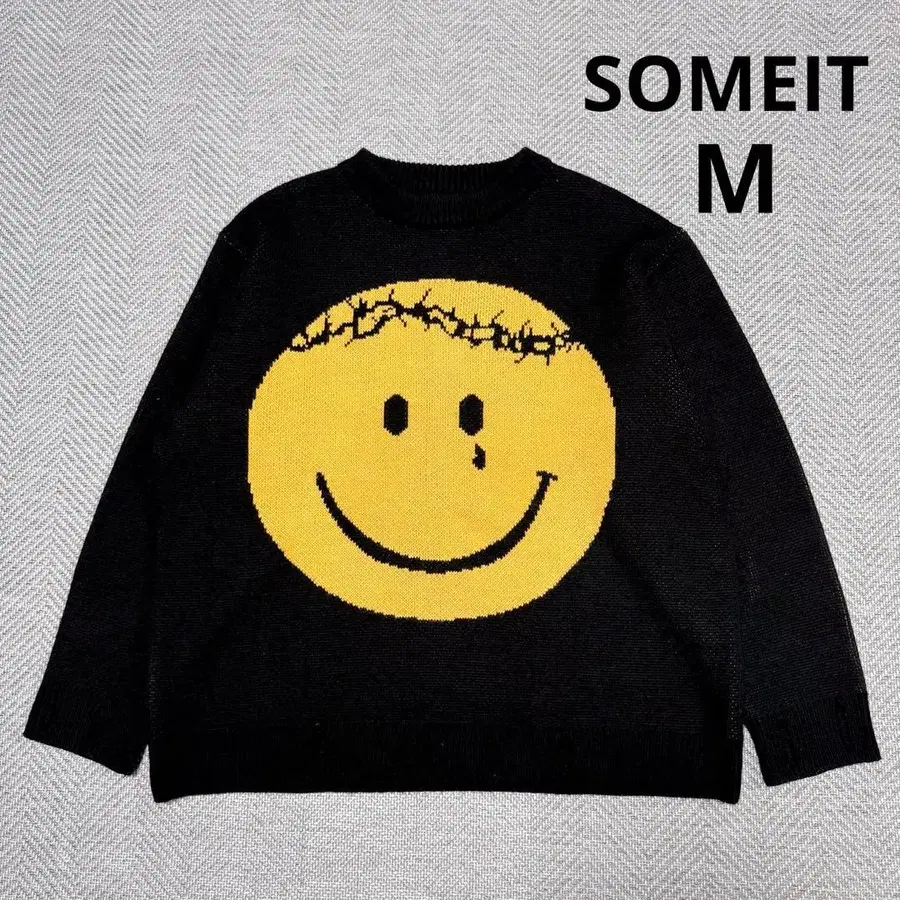 두꺼운 원단 니트 스마일 블랙