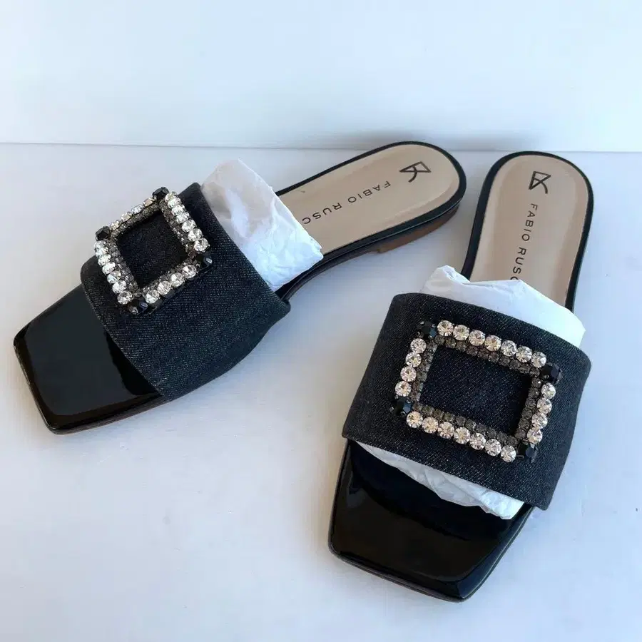 [ 모델 ] 비쥬 장식 플랫 데님 샌들