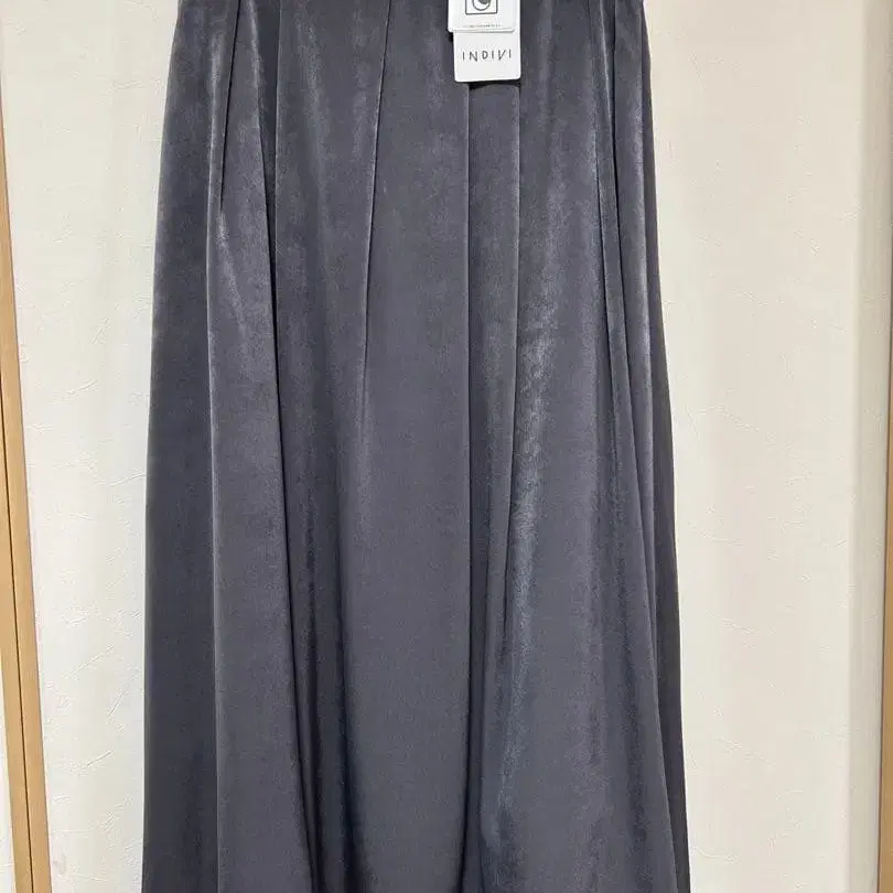 스웨이드 느낌으로 밤 같은 기모감이 느껴지는 새틴 원단을 사용한, 비대칭 턱 스커트입니다.