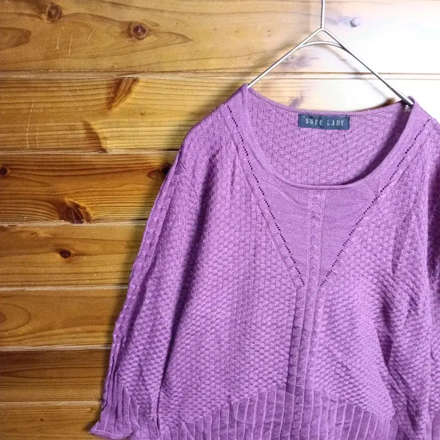 니트 스웨터 7부 소매 입체 편직 고급 실크 100% 보라색 퍼플 L