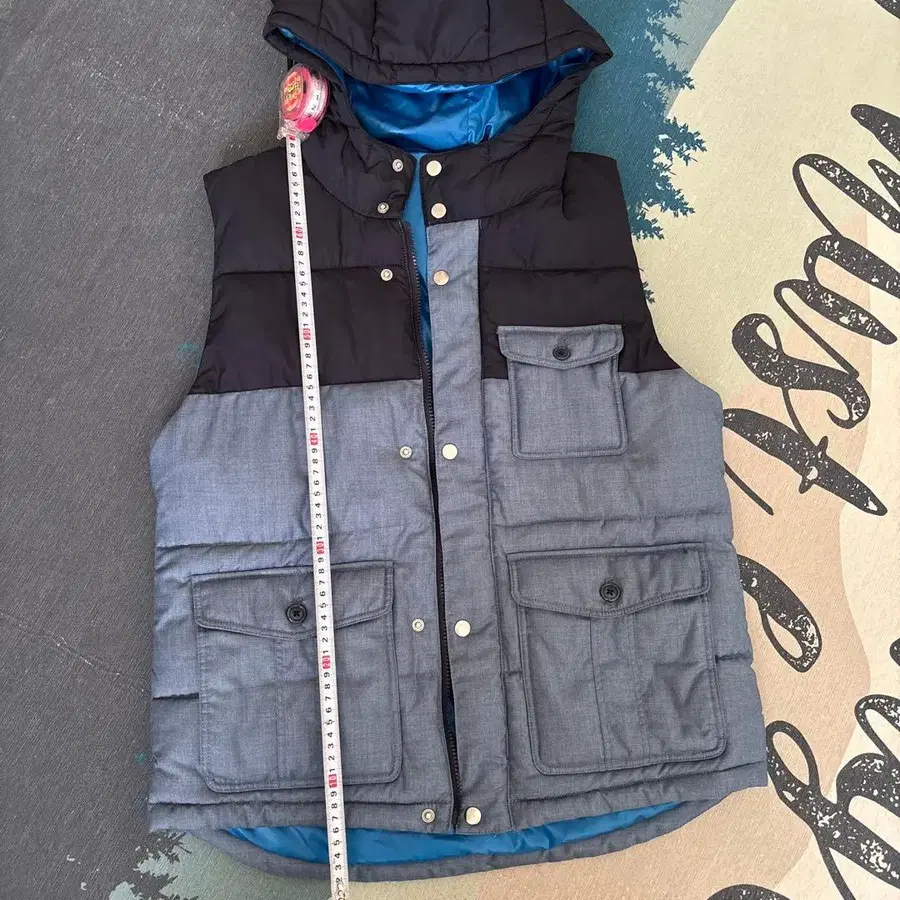 후드 부착 다운 베스트 블랙과 그레이