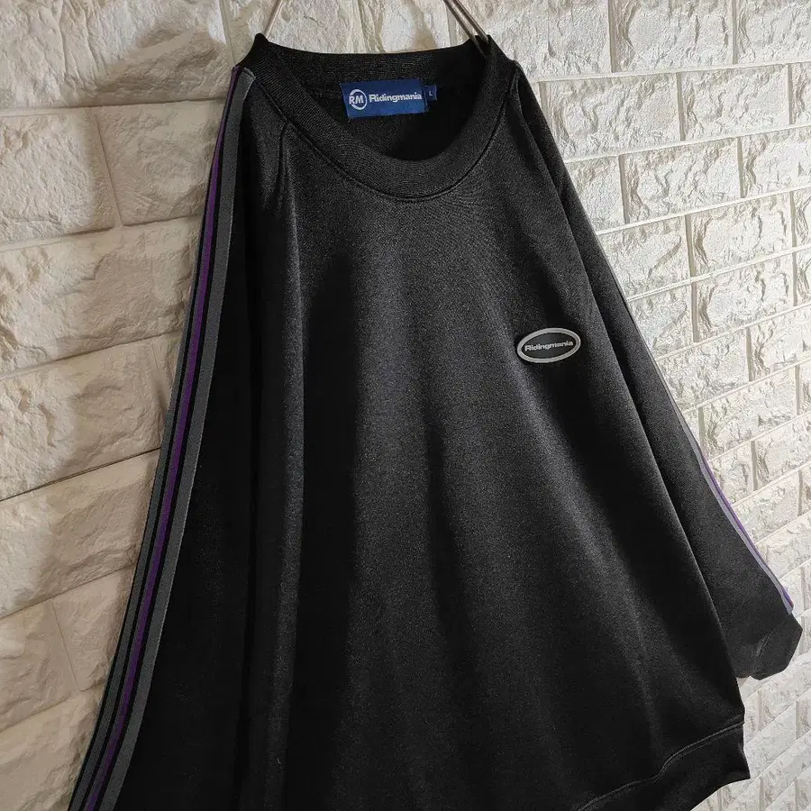 맨투맨 트레이닝복 사이드 라인 저리풍 원단 원포인트 L 블랙