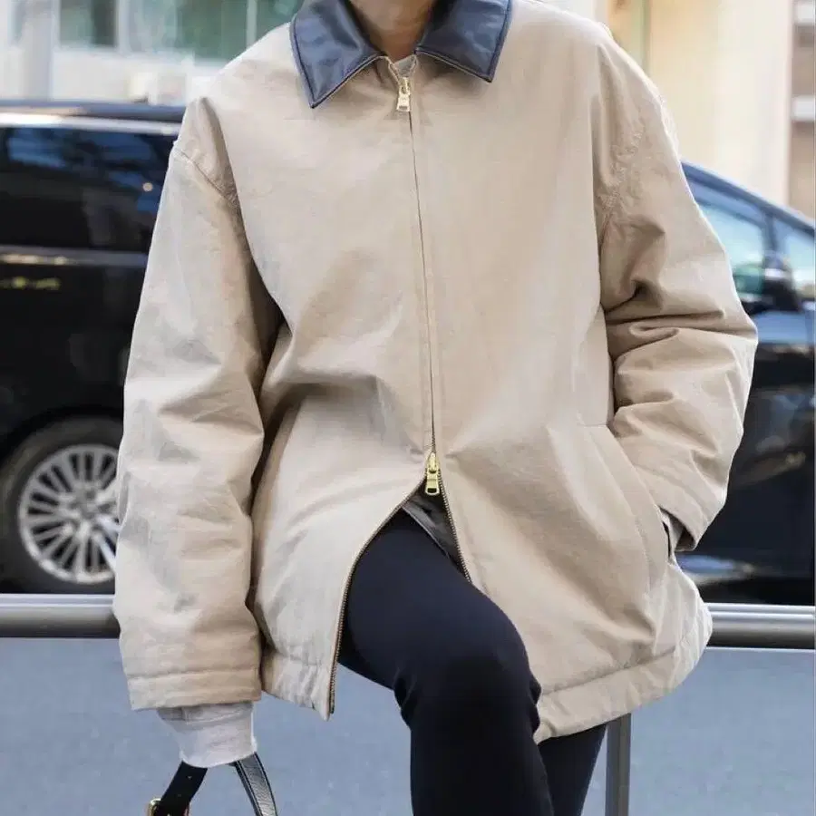 프론트의 골드 지퍼가 캐주얼한 아이템을 더욱 성숙하고 고급스러운 분위기로 마무리해 줍니다.