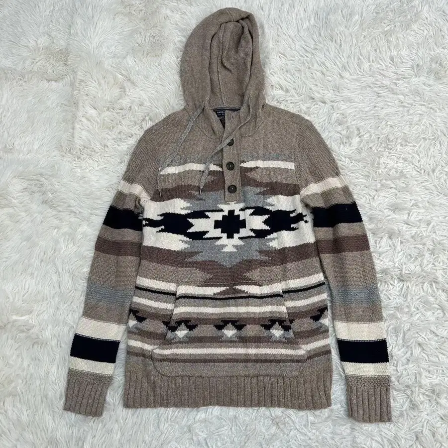 카우친 스웨터풍 후드 부착 니트 후드티 베이지