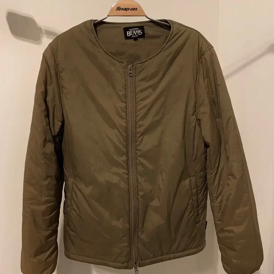 자동 번역되었어요. 원문보기BEAMS의 올리브 그린 나일론 자켓입니다.