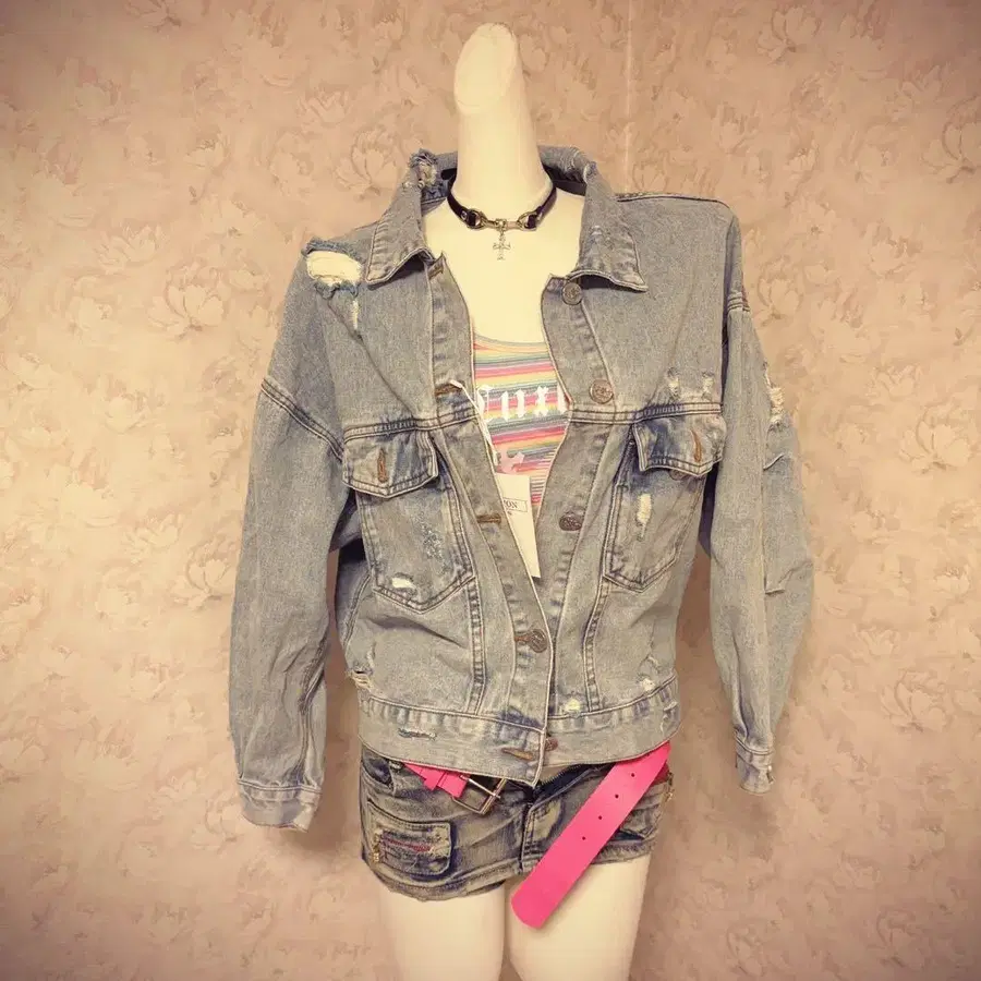• 라이트 블루 데미지 가공 데님 자켓