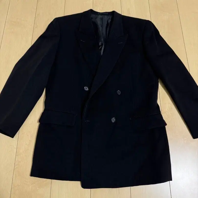 블랙 더블 브레스트 정장 자켓, 포멀한 장면에 최적.