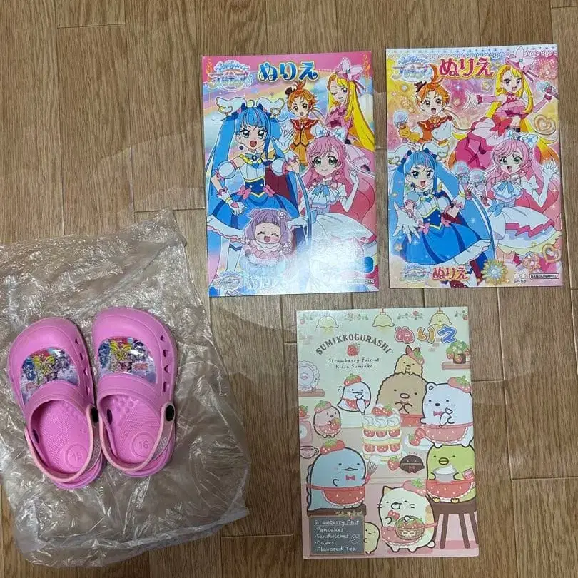아이돌 프리큐어 샌들 16cm 사용 횟수가 적은 채로 사이즈 아웃되었습니다. 덤으로 미사용 색칠놀이 3권을 함께 드립니다.
