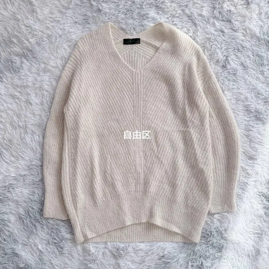 자유구 앙피로 아이보리 V넥 니트 스웨터 모헤어 38 새상품급